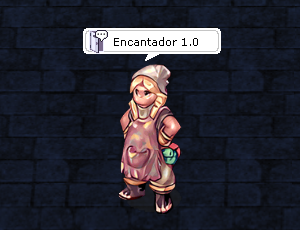 O NPC utiliza uma magia negra desconhecida para encantar equipamentos.